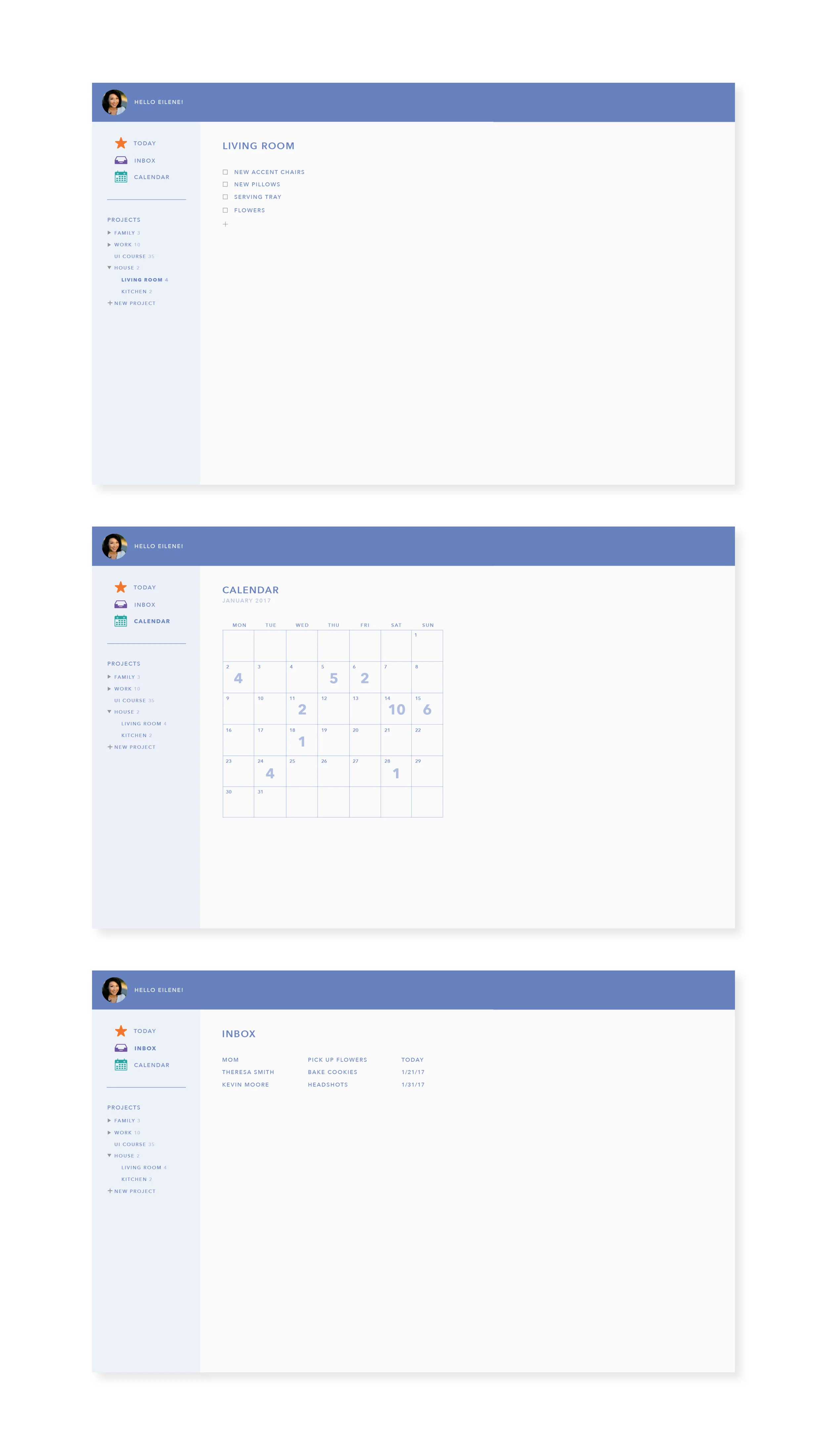 RESULT AN ULTRA MINIMALIST DESIGN FOR DESKTOP, TABLET AND PHONES -- TO OVERCOME VISUAL OVERLOAD THAT CAN EASILY COME WITH TO-DO APPS I KEPT APP ELEMENTS TO A MINIMUM AND INCORPORATED STRONG VISUAL CUES TO ALLOW USERS TO EASILY ACCESS INFORMATION QUICKLY.